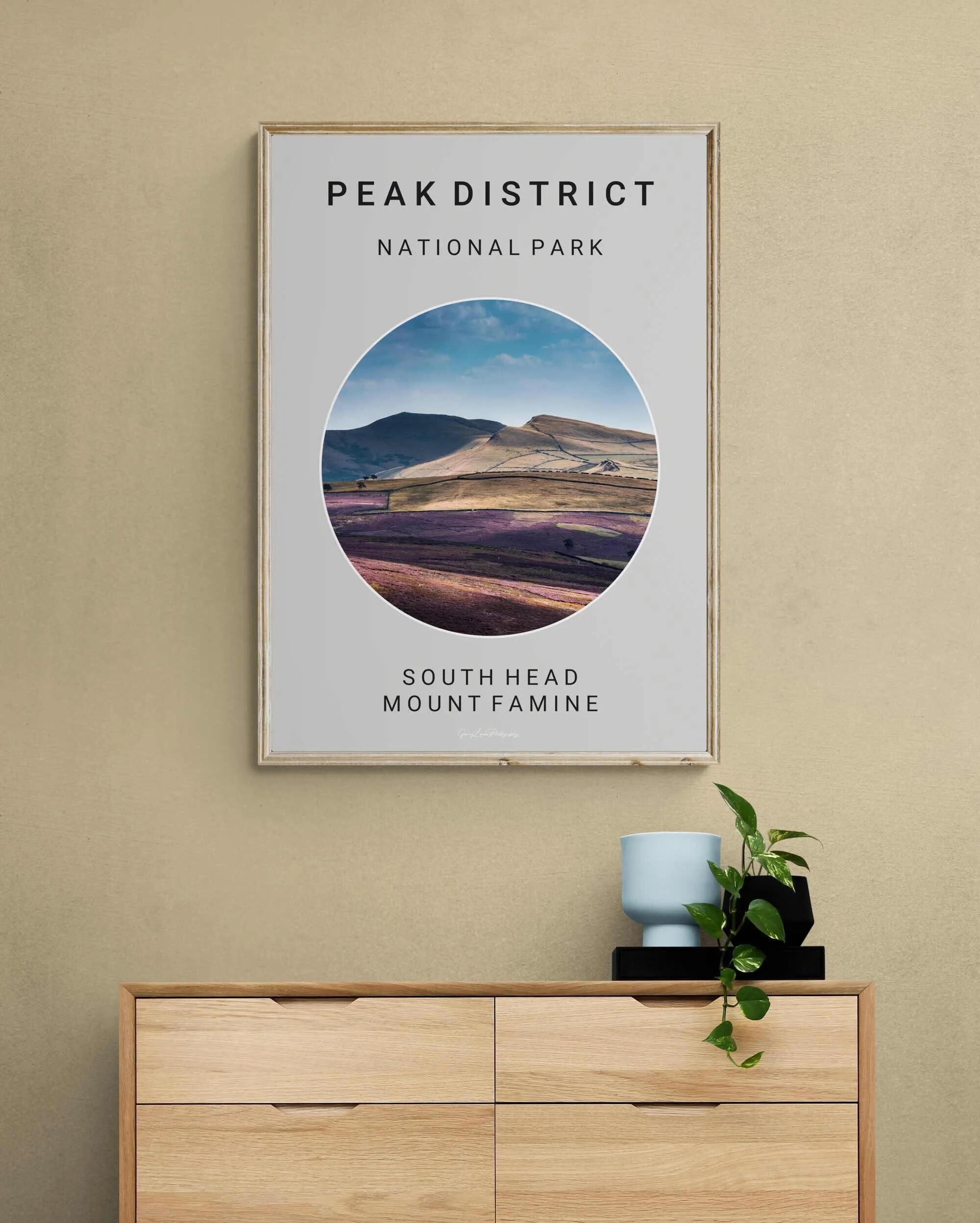 Print only, no frame or mount. Images are to show how the print looks in different coloured frames. The image has a white border with text set below.